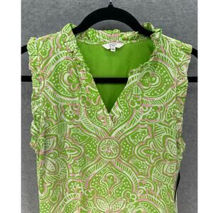 Crown & Ivy Women sz S Pink Green V Neck Shift Dress Coastal Preppy Workwear NWT