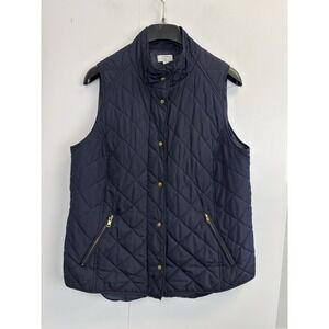 Crown & Ivy Women's 1X Navy Blue Quilted Full Zip Vest Lined