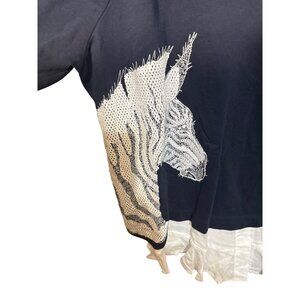 This Crown & Ivy top features an elegant zebra graphic, adding a touch of sophistication to a casual look. The ruffled hem enhances its stylish appeal, creating a unique layered effect. Made from soft cotton, this top ensures comfort while maintaining a chic appearance, making it a versatile addition to your wardrobe.