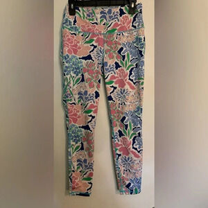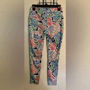 Crown & Ivy Womens 7/8 Leggings Size Small Inside Front Pocket Floral Pink Blue