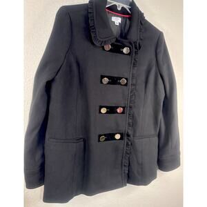 Crown & Ivy Women’s Black Jacket PeaCoat XL Double Breasted Ruffle Chic Dressy