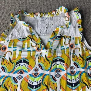 Crown & Ivy Womens Blouse Top Size 1X White Yellow Elephant Eyelet Sleeveless