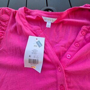 Crown & Ivy Women's Blouse with Eyelet Sleeves & V Neck Sz XXL New With Tags
