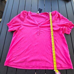 Crown & Ivy Women's Blouse with Eyelet Sleeves & V Neck Sz XXL NWT