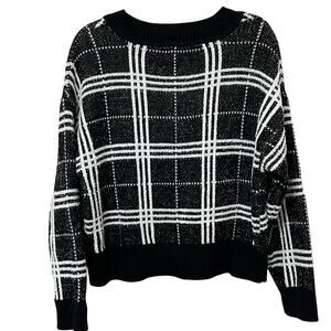 Crown & Ivy Women’s Cropped Sweater Sz Medium Black/White/pink