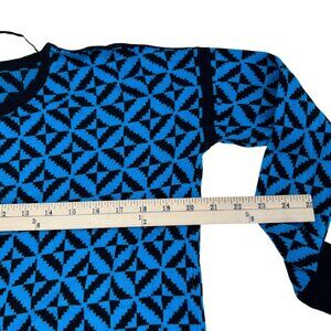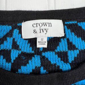 Crown & Ivy Women's Geometric Blue Black Sweater Size S Cotton Blend Lightweight