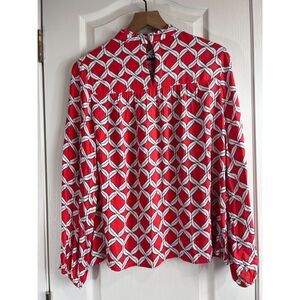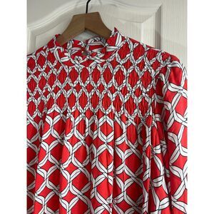 Crown & Ivy Women's Geometric Print Long Sleeve Smocked Blouse Top Size S