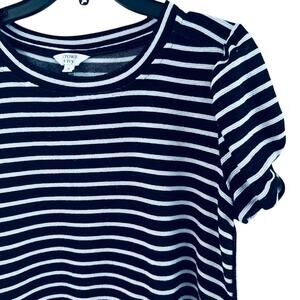 Crown & Ivy Women’s M Medium Sweater Blue White Striped Scoop Neck Puff Sleeves