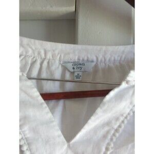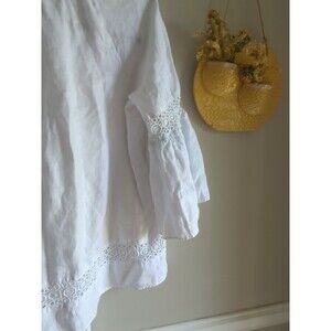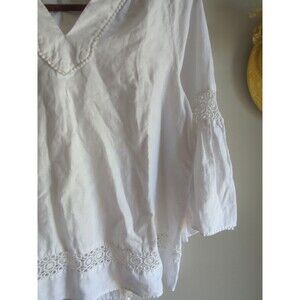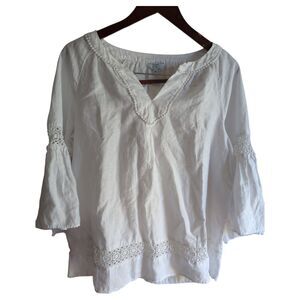 Crown & Ivy Women's M White Linen Blend Quarter Sleeve Bell Sleeve Summer Blouse