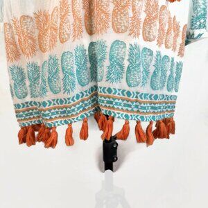 Crown & Ivy Womens Med Pineapple Shirt White with Green Pineapple Orange Fringe
