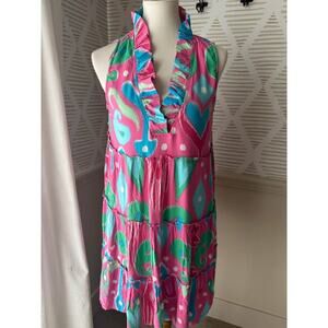 Women’s Medium Pink Ruffle Ikat Mini Dress