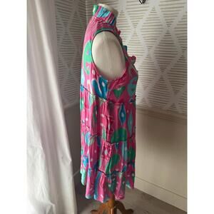 Crown & Ivy Women’s Medium Pink Ruffle Ikat Mini Dress