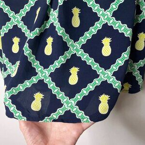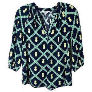 Crown & Ivy Women's Peasant Top PS Pineapple Print Navy Blue 3/4 Sleeve Blouse