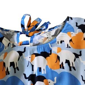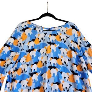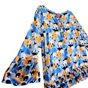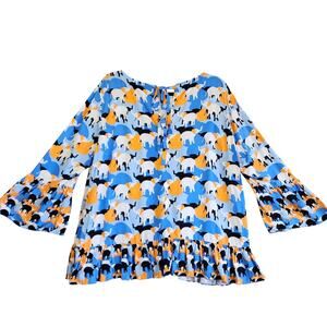 Crown & Ivy Womens Peplum Top Size XXL Bell Sleeves Elephant Print Orange Blue