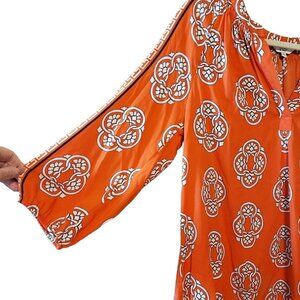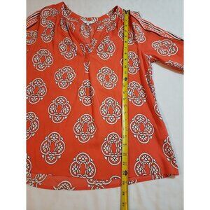 Crown & Ivy Womens Printed Boho Blouse With 3/4 Sleeves & Elastic Cuffs Size S