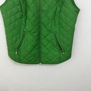 Crown & Ivy Women's Quilted Vest Size M Green Zip Snap Adjustable Classic