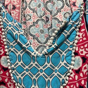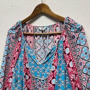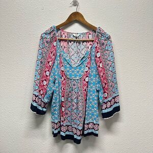 Crown & Ivy Women’s Red Blue V Neck Floral 3/4 Sleeve Top Size 2X