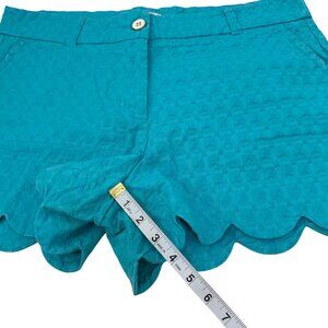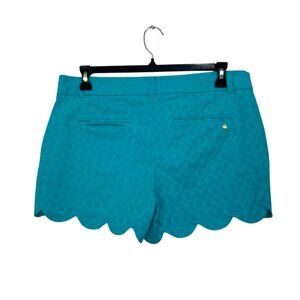 Crown & Ivy Womens Scalloped Hem Aqua Shorts Size 12 Shelby Cotton/Spandex