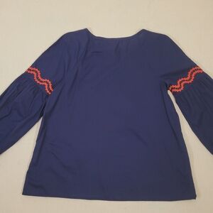 Crown & Ivy Women's Small Navy Blue Embroidered Red Paisley Peasant Blouse Boho