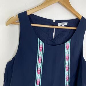 Crown & Ivy Womens Tank Top Size M Navy Blue Round Neck Sleeveless Boho Summer
