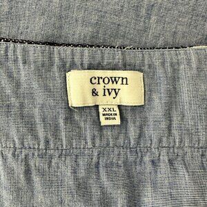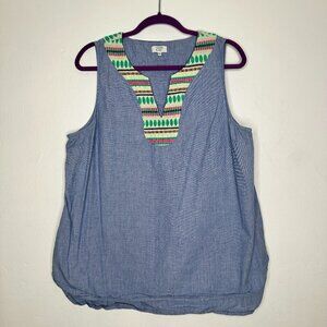 Crown & Ivy Womens Top Embroidered Trim V Neck Size XXL Sleeveless Blue Normcore