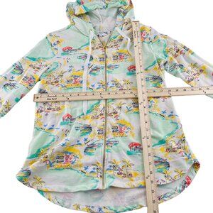 Crown & Ivy Womens Tropical Print Zip-Up Hoodie Jacket Medium Cotton/Polyester