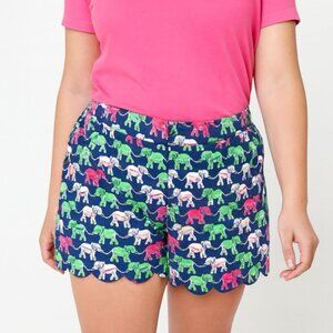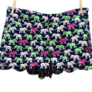 Crown & Ivy Womens Twill Shorts Multicolor Elephant Scalloped Hem Size 10