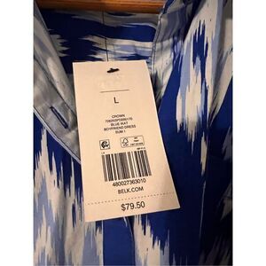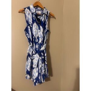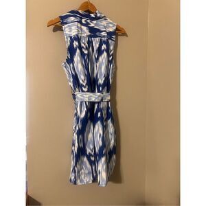 Crown & Ivy Womens L Tie Waist Boyfriend Dress Blue Ikat Print Sleeveless Summer