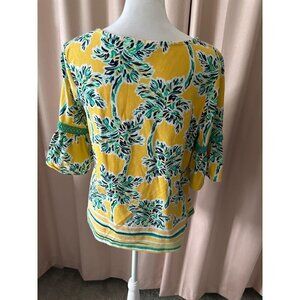 Crown & Ivy Yellow Floral Ruffle Sleeved Blouse Womens PS