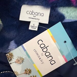 Crown & Ivy blue plush bomber jacket with multicolor star print Size Large