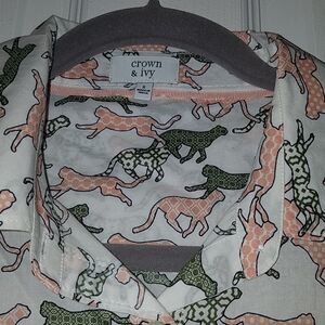 Crown & Ivy cheetah print button down shirt Sz S