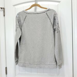 Crown & Ivy gray round neck rhinestone/beaded sweatshirt, SMALL