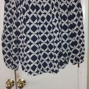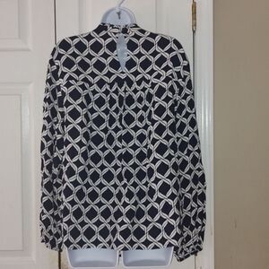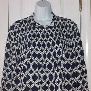 Crown & Ivy navy white long sleeve top blouse Sz 1X
