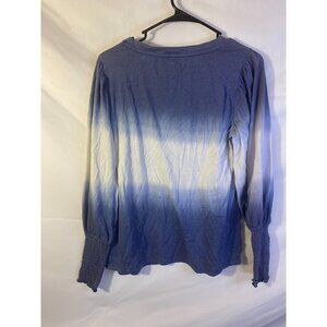 Crown & Ivy ombre Shirt Long Sleeve Fall Top Blouse Blue Womens Size PM Petite M