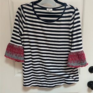Crown & Ivy striped embroidered bell sleeve top size medium
