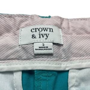 It’s the perfect pair of summer shorts for beach photos. This is the epitome of my favorite summer outfit- bright colored shorts, a crisp white top, and sandals. They are the perfect shade of teal- bright and cheery. These sz 2 shorts from Crown & Ivy are made from 98% cotton and 2% spandex for a cool and perfect fit. They can be dressed up or dressed down to change your style almost instantaneously. Measurements are included for reference purposes only and may not be exact.