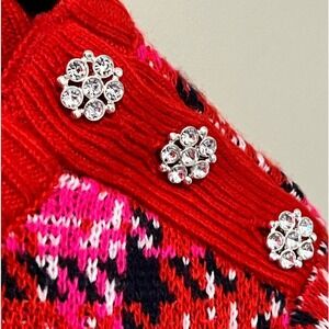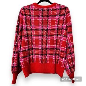 Crown & Ivy women’s size large red plaid pullover sweater rhinestone shoulders