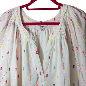 Crown & Ivy 4X lined white & multi boho notch neck peasant blouse.