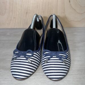 Crown & Ivy Mia Blue/White/Silver Striped Flats Women's 7
