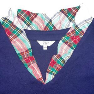 Color: Navy Blue / Plaid Collar & Cuff