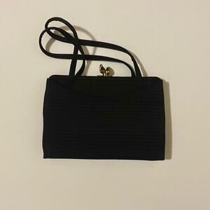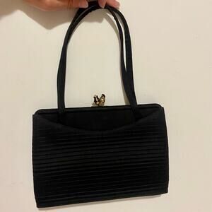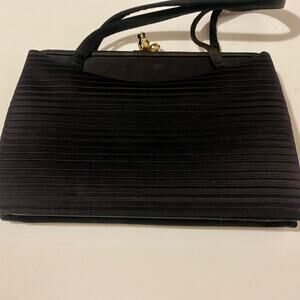 Crown Lewis Vintage Black Pleated Rectangular Purse Evening Bag