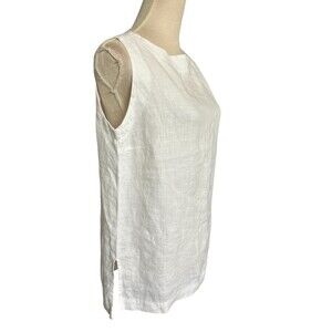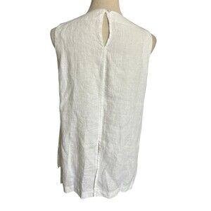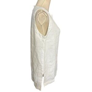 Crown Linen Designs 100% Linen Tunic Top Womens White Lagenlook Beachy Sleeveless