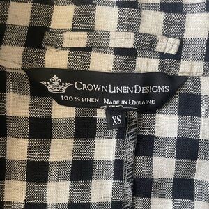 Crown Linen Designs 100% Linen black white gingham women's XS open front Jacket