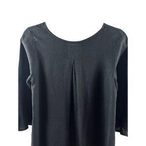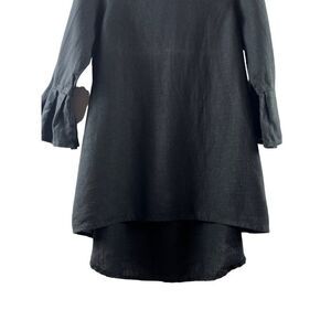 Crown Linen Designs 3/4 Bell Sleeve Hi-Lo Tunic Blouse XS Black European Linen