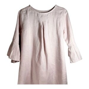 Our Bella Linen Top by Crown Linen Designs is perfection! Enjoy this wonderful 100% linen top in every season. Linen keeps you warm in the winter and cool in the summer. The Bella Linen Top by Crown Linen Designs is waist length in front and a longer in the back, has a 3/4 sleeve with a bell ruffle, and a crew neck. The design is generous, but looks great on all body styles.