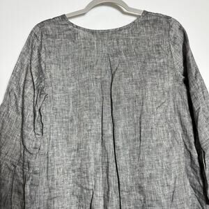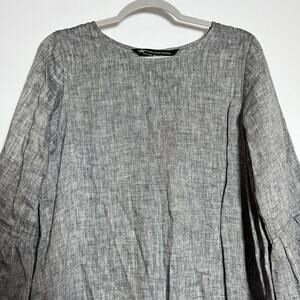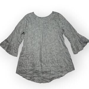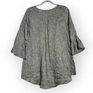 Crown Linen Designs Shirt Dress Womens S Gray Chambray Bell Sleeve 100% Linen