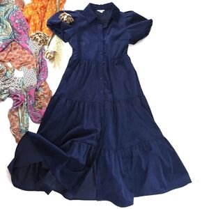 Crown Navy Blue Button-Up Maxi Dress Sz Xs