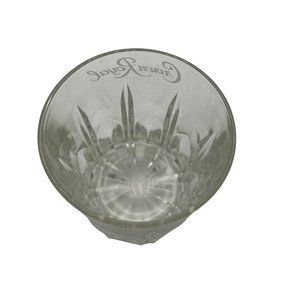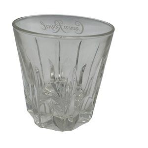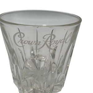 Crown Royal lowball whiskey glass with a diamond starburst design. The glass measures approximately 3 1/2" across. Made in Italy.