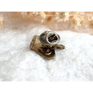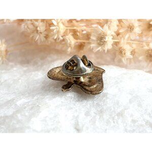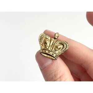 Awesome little gold toned crown shaped pin. Textured and detailed along the anterior. Enclosure is lapel pin.