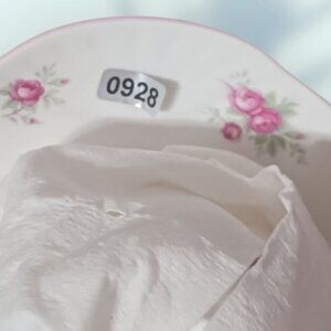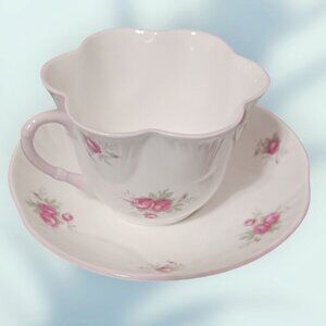 The Crown Staffordshire Sweetheart Rose teacup and saucer set is crafted from exquisite fine bone china. Its delicate floral motifs and soft pastel hues exude timeless elegance, making it an ideal addition to a refined collection or tea setting. This set showcases intricate artistry, embodying a classic English charm.they are like new without box from smoke and pet free home